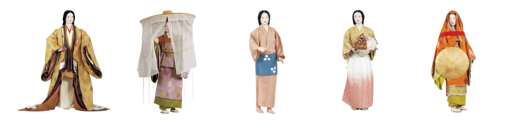 Le prime testimonianze dell’abbigliamento femminile in Giappone provengono dalle statue funerarie haniwa, che raffigurano donne con indumenti semplici, probabilmente influenzati dalle culture continentali.